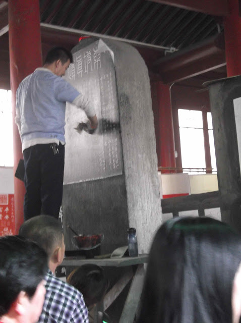 This did not mean much to us at first but we soon realised that this collection of stones was one of China's most important heritage collections. There were about 300 granite stones, all 8 foot by 2 foot by 12 inches thick. You can imagine that they weigh several tonnes each. They contained writing of Confucius and other early wise men and are studied extensively by historians and religious people. We could not get a good photo of the writing because the stones were in glass cases which reflected surroundings.